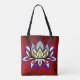 Frisch gefärbter Rainbow Lotus auf einer robusten Leinwand-Tasche gedruckt. Fett und auffällig, dieses Stück zeigt meinen Rainbow Lotus vor einem Hintergrund von tiefen rot und violett.