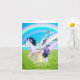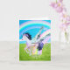Ein digitales Bild eines farbenfrohen fliegenden Einhorns, das auf Gras landet, nachdem sie mit ihrer Magie Regenbögen am Himmel geschaffen hat.