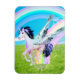 Ein digitales Bild eines farbenfrohen fliegenden Einhorns, das auf Gras landet, nachdem sie mit ihrer Magie Regenbögen am Himmel geschaffen hat.