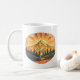 A radiant rainbow mountain sunrise scene that blends warmth with vintage outdoor charm. Golden sun rays burst behind a glowing peak, layered with soft clouds, forest silhouettes, and rolling hills in rich sun soaked tones. Perfect for nature lovers, hikers, mountain souls, and anyone drawn to sunrise magic and mountain landscapes. This uplifting coffee mug captures that quiet moment when the world wakes up — bold, peaceful, and full of possibility.