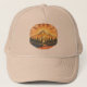 A radiant rainbow mountain sunrise scene that blends warmth with vintage outdoor charm. Golden sun rays burst behind a glowing peak, layered with soft clouds, forest silhouettes, and rolling hills in rich sun soaked tones. Perfect for nature lovers, hikers, mountain souls, and anyone drawn to sunrise magic and mountain landscapes. This uplifting hat captures that quiet moment when the world wakes up — bold, peaceful, and full of possibility. | Available on multiple hat styles. Choose a trucker, dad, snapback, or bucket hat from the Product Style menu