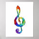 Polygonal, Regenbogen, knallknallknackige Musiktaste auf weißem Hintergrund. Polygontattoo. Treble clef
