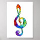 Polygonal, Regenbogen, knallknallknackige Musiktaste auf weißem Hintergrund. Polygontattoo. Treble clef