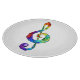 Polygonal, Regenbogen, knallknallknackige Musiktaste auf weißem Hintergrund. Polygontattoo. Treble clef