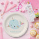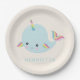 Rainbow Narwhal Kawaii Muster Pastel Blauer Name Pappteller