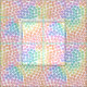 Niedliches Blumengewebe mit einem Feld von Blume in Regenbogenfarben, das sich aus Ober- und Farbmustern zusammensetzt, von Violett über Blau bis Grün, Gelb bis Pfirsich bis Rosa.