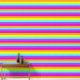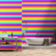 Rosa, gelbe, Lila und rote Rainbow Streifen gemusterte Tapete.