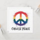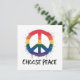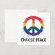 Ein lebendiges, in Regenbogenfarben gerendertes Zeichen für ein ruhiges Set mit einem Farbspritzer und einem Tropfen-Effekt. Unter ihm ist die Phrase "CHOSE PEACE" in einem kühnen Schriftart mit Pinselstrich geschrieben, der eine Botschaft der Einheit und Harmonie vermittelt.