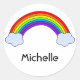 Aus den Wolken entsteht auf diesem Aufkleber ein Regenbogen mit einem Namen unten in schwarzen Buchstaben. Personalisieren Sie Ihre Daten mit Ihrem eigenen Namen oder einem anderen Text. Anpassen an den Stil und die Farbe des Schriftartes.