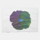 Dieses phantastische Küchentuch zeigt ein Foto einer Petunia-Blume, die so bearbeitet wurde, dass die Mitte der Blume blau ist. Die Erholung der Blume ist lila, grün und blau gehalten, was ihr das Aussehen einer grungenhaften Regenbogen-Blume verleiht.