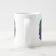 Diese phantastische Tasse zeigt ein Foto einer Petunia-Blume, die manipuliert wurde, um die Mitte der Blume blau zu machen. Die Erholung der Blume ist lila, grün und blau gehalten, was ihr das Aussehen einer grungenhaften Regenbogen-Blume verleiht.