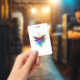 Hell, Regenbogen, polygonale Libelle auf weißem Hintergrund, mit Aquarell bemalt.