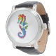 Künstlich gezeichnet, hell, Regenbogen, polygonales Seepferd auf weißem Hintergrund. Helles Tattoo.