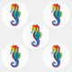 Künstlich gezeichnet, hell, Regenbogen, polygonales Seepferd auf weißem Hintergrund. Helles Tattoo.