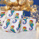Künstlich gezeichnet, hell, Regenbogen, polygonales Seepferd auf weißem Hintergrund. Helles Tattoo.