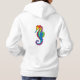Künstlich gezeichnet, hell, Regenbogen, polygonales Seepferd auf weißem Hintergrund. Helles Tattoo.