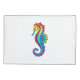 Künstlich gezeichnet, hell, Regenbogen, polygonales Seepferd auf weißem Hintergrund. Helles Tattoo.