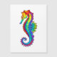 Künstlich gezeichnet, hell, Regenbogen, polygonales Seepferd auf weißem Hintergrund. Helles Tattoo.