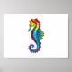 Künstlich gezeichnet, hell, Regenbogen, polygonales Seepferd auf weißem Hintergrund. Helles Tattoo.