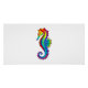 Künstlich gezeichnet, hell, Regenbogen, polygonales Seepferd auf weißem Hintergrund. Helles Tattoo.