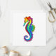Künstlich gezeichnet, hell, Regenbogen, polygonales Seepferd auf weißem Hintergrund. Helles Tattoo.