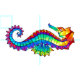 Künstlich gezeichnet, hell, Regenbogen, polygonales Seepferd auf weißem Hintergrund. Helles Tattoo.