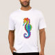 Künstlich gezeichnet, hell, Regenbogen, polygonales Seepferd auf weißem Hintergrund. Helles Tattoo.