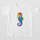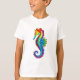 Künstlich gezeichnet, hell, Regenbogen, polygonales Seepferd auf weißem Hintergrund. Helles Tattoo.