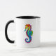 Künstlich gezeichnet, hell, Regenbogen, polygonales Seepferd auf weißem Hintergrund. Helles Tattoo.
