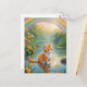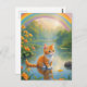 Tauchen Sie ein in eine Welt der Launen mit diesem Bild mit einem lebendigen orangefarbenen Kätzchen auf einem flachen Teich mit einem magischen Regenbogen am Himmel!