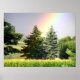 Ein fantastischer Ausdruck eines schönen Regenbogens über ein Feld hinter Evergreens. Wo offensichtlich der "Topf Gold" liegt:)