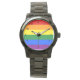 Die Regenbogenflagge repräsentiert das Diversity von Schwulen und Lesben auf der ganzen Welt. In der ursprünglichen 8-Farben Version stand Rosa für Sexualität, rot für Leben, orange für Heilung, gelb für die Sonne, grün für die Natur, türkis für Kunst, indigo für Harmonie und violett für Geist.
