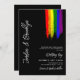 Rainbow LG Hochzeitseinladung mit der Regenbogenstolerflagge gezeichnet mit chaotischen Strichen auf schwarzem Hintergrund. Ihre Namen in einem handgeschriebenen Skript entlang der links Seite der Stolz Hochzeitseinladung.