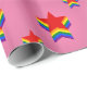 Pink Wrapping Paper with star in the colors of LGBT (lesbian, gay, bisexual, and transgender people) rainbow stripes flag, gay pride lgbtqiap+ design,