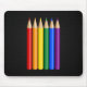 Mousepad mit Bleistiften in den Farben LGBT (lesbisch, schwul, bisexuell und transsexuell) Regenbogenstreifen Fahne, Gay Pride lgbtqiap+ Design.