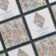 Geometrische Designerkarte mit farbenfrohen Diamantformen. Quadratische Anordnung mit Prisma auf der Vorderseite und geometrisches Muster auf der Rückseite. Passen Sie Ihren Namen, Ihren Titel und Ihre Kontaktdaten an.