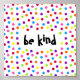 Ein buntes, lustiges Poster mit einem Konfetti-Polka-Punktmuster und den Worten "Sei freundlich" in der Mitte. Text kann personalisiert sein.