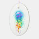 Große, rieszierende, künstlerisch gezeichnet, helle Quallen mit langen Tentakeln auf Weiß, mit farbenfrohen Aquarellbildern überstrichen. Rainbow-Quallen