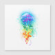 Große, rieszierende, künstlerisch gezeichnet, helle Quallen mit langen Tentakeln auf Weiß, mit farbenfrohen Aquarellbildern überstrichen. Rainbow-Quallen