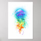 Große, rieszierende, künstlerisch gezeichnet, helle Quallen mit langen Tentakeln auf Weiß, mit farbenfrohen Aquarellbildern überstrichen. Rainbow-Quallen
