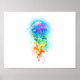 Große, rieszierende, künstlerisch gezeichnet, helle Quallen mit langen Tentakeln auf Weiß, mit farbenfrohen Aquarellbildern überstrichen. Rainbow-Quallen