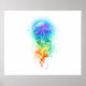 Große, rieszierende, künstlerisch gezeichnet, helle Quallen mit langen Tentakeln auf Weiß, mit farbenfrohen Aquarellbildern überstrichen. Rainbow-Quallen