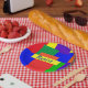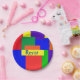Dieses farbenfrohe Set von Tellern aus Papier präsentiert ein Patchwork-Quilt-Design in Regenbogenfarben mit einem strukturierten Look. Personalisieren oder entfernen Sie den Text einfach.