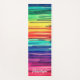 For the yoga lover. A lively, colorful rainbow inspired yoga mat which can be personalized to include the recipient's name which will appear in a script written font. A bold and colorful rainbow yoga mat for the vibrant yogi in your life.