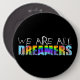 Originelle digitale Illustration mit Regenbogen und Skyline von US-Städten für The Dreamers auf schwarz kolossalen Knopf. Sie können den Text "Wir sind alle" (Schriftart, Größe und Position) einfach ändern, indem Sie auf die Schaltfläche Anpassen klicken. Matching Shirt und mehr...