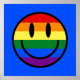 This colorful artwork features a rainbow smiley face.