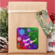Viereckiger Aufkleber mit hübschem Blau, Fuchsien und grünen Schneeflocken auf einem Regenbogenhintergrund von Urlaubsleuchten und einer weißen Urlaubsstimmung. Siehe dazu passende quadratische Einladung, Konfetti und Packpapier. Die gesamte Neujahrsaufkleberkollektion finden Sie unter CARDS & STICKERS Kategorie im Bereich HOLIDAYS.