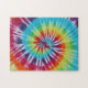 Foto aus Stoff gefärbt ein helles, farbenfrohe Regenbogenspirale gefärbte Krawatte Muster. Das Muster oder Textur Foto schafft ein herausforderndes Puzzle. Ein lustiges Spiel für Ihr Kind bei der Geburtstagsfeier.