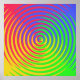 Hier ist ein buntes Poster mit einem abstrakten Wendelregenbogen, das um ein zentrales Ziel wirbelt, in den Farben Grün, Blau, Gelb, Orange und Rot.