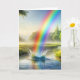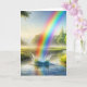 Ein lebendiger Regenbogen schlängelt sich in einen ruhigen Fluss, der von üppiger Vegetation und weit entfernten Bäumen umgeben ist. Der Text kann geändert werden.